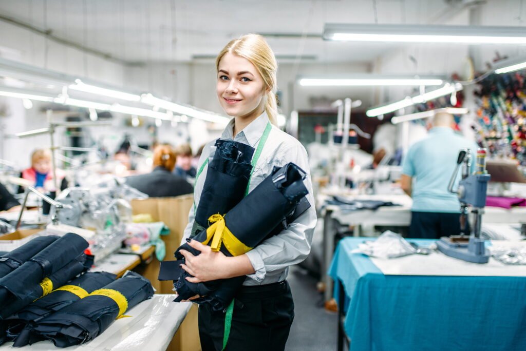 During this stage, garments are cut, sewn, and assembled in large quantities.